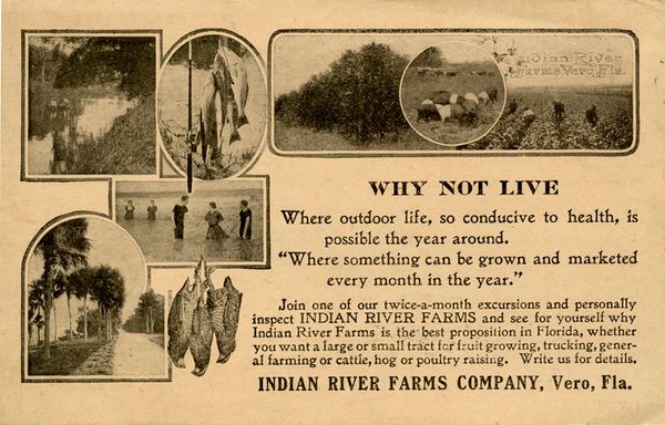"Large scale drainage of swamp land such s that which surrounded Vero was being undertaken in Florida. An example of the way in which investors took advantage of the newly recognized potential of swampy areas may be found in the creation of the Indian River Farms Company. In 1909, Herman T. Zeuch of Davenport, Iowa visited the Vero area. He saw land that could be drained and sold to citrus farmers and cattle raisers. A corporation, the Indian River Farms Company, was chartered in 1912 with stockholders who were chiefly residents of Zeuch's home town. In 1913, the town of Vero was platted at the Company's direction. . . The planned drainage program was completed in 1917. In that year, maintenance and extension of the drainage area was given over to the State of Florida. The name of the community was changed to Vero Beach in 1925, when the town became the seat of the newly created Indian River County. The IRC Farms Company was dissolved in 1936. Vero Beach has remained the center of this productive citrus growing region."